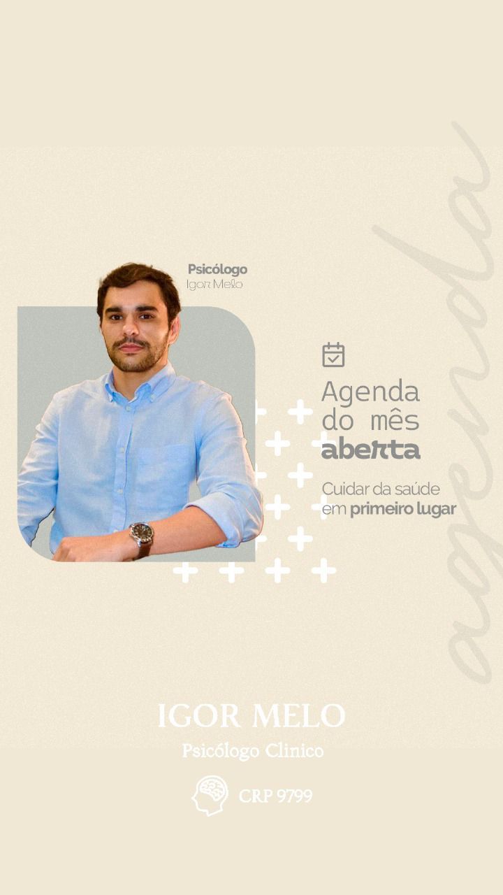 Meu nome é Igor Melo, sou Psicólogo Clínico e atuo com a Terapia Cognitivo-Comportamental (TCC), buscando promover o autoconhecimento e desenvolver estratégias práticas para lidar com pensamentos, emoções e comportamentos.
